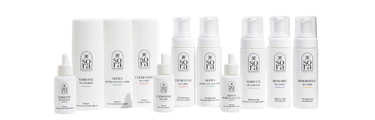 Découvrez SORA, votre nouvelle marque de soins capillaires naturels et holistiques, inspirée par la beauté sauvage de la Corse. Nos formules uniques sont enrichies d’ingrédients d’exception issus des terres corses, sélectionnés avec soin pour respecter l’équilibre naturel de vos cheveux et de l’environnement.
